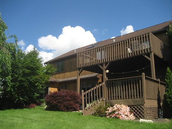 Corner lot single * What views! * Must see home * Open concept * Great room opens up to kitchen with a 3-sided gas fireplace * Formal living room with vaulted ceiling and dining room * Great all-season room w/ lots of natural light * 3 decks * 2 story foyer * Real brick front * Side entrance oversized garage * Full basement * Mature landscaping * Master bedroom suite with French door to loft/den, French doors that go out to private deck, jetted tub, shower, his & her sinks and large walk-in closet * 2.5 baths * Great curb appeal * Security system * HMS home warranty * Skylights and more!