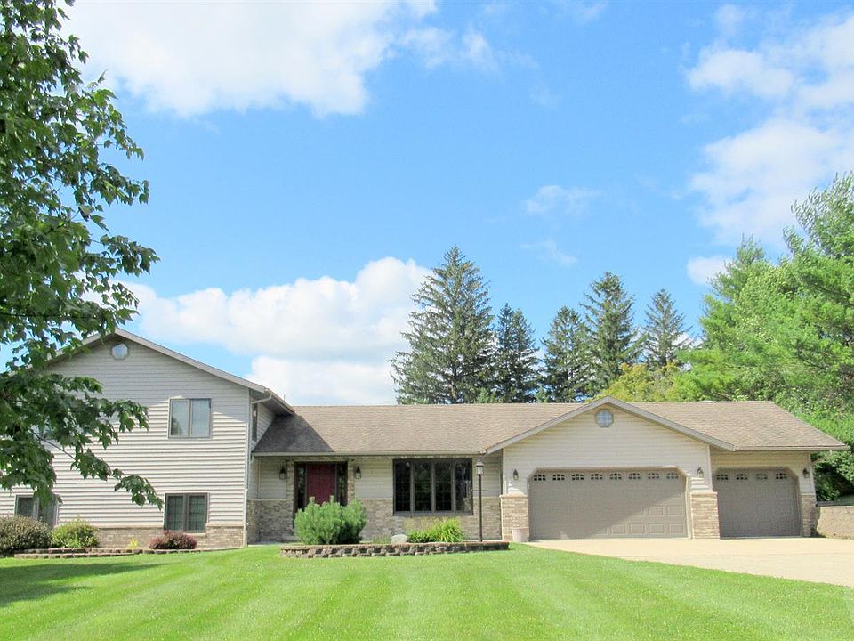 Premium Quality~stick built~home near Bear Creek Golf Course. This property is a very well kept multi-level home that offers a spacious foyer, formal living/music room, kitchen and dining room on the main level w/solid oak floors. Custom built kitchen with ample counter space, an island, feature lighting, pantry and desk center...open to the dining area. Patio Doors lead to 1500 sq ft stamped/stain concrete patio with fireplace/grill space-offering room for outdoor entertaining. The upper level of this home offers three bedrooms and 2 baths. A spacious master bedroom/bath features cathedral ceilings, bay windows, N.G. fireplace. The master bath includes sky light, jetted tub, step in shower, two vanities, ample storage. Each of the other bedrooms offer 4' closets. The Ground level of this home features an office with built ins, a fourth bedroom, and family room featuring N.G. fireplace with oak surround. French doors open to a year round sun room that has in floor heat under ceramic tile. Windows are on all three walls to offer a panoramic view of the back yard. The lowest level of this home offers a Rec Room and mechanical room. This open room has small kitchenette with sink and fridge. Spacious triple garage (with stairway from lowest level) is well insulated and sheet rocked~has drain and electrical for most projects. This home features most of what any family could want! New Construction could not be built with these amenities...for this price. Qualified buyers may call for more information and to set your appointment!