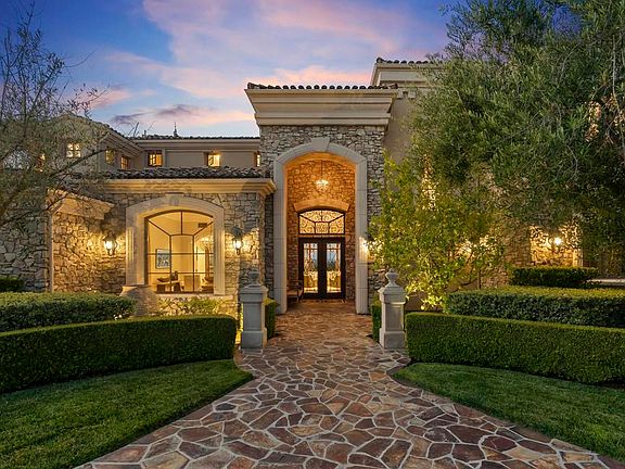 Awe inspiring views of the canyons & the ocean await you from this private estate located in the coveted gated community of Cielo. This timeless custom Dena Gillespie home is perched on a large lot seamlessly blending indoor/outdoor living with first class appointments. With several view decks, a jacuzzi spilling into the salt water pool, built-in BBQ, large covered dining area, built-in bar, putting green & fire-pit, it's the kind of dream yard that feels like a quiet escape. The interior of the home is brimming with exceptional finishes & fine craftsmanship. Recently updated chef's kitchen with quartzite countertops, large prep island, Wolf range, SubZero refrigerator/freezer, butlers pantry & wine room with etched glass & custom wrought iron door. For those seeking serenity, escape to the main floor primary suite with a cozy fireplace, heated bathroom floors, steam shower, lavish bathtub, sauna & picturesque windows to soak in the views. Additional amenities include tumbled travertine flooring, all new chandeliers throughout, 4 en-suite guest bedrooms (one on the main level), an upstairs temperature controlled wine room, oversized 3 car garage, Lutron lighting system & Aqualink system for the pool to easily manage from your phone or tablet. Situated in the award winning Rancho Santa Fe school district. The community of Cielo has world-class amenities including 24 hour gate guarded security, an Olympic-sized pool, state-of-the-art gym, 2 tennis courts, pickleball, nature trails, beautiful parks & an indoor/outdoor entertaining area.