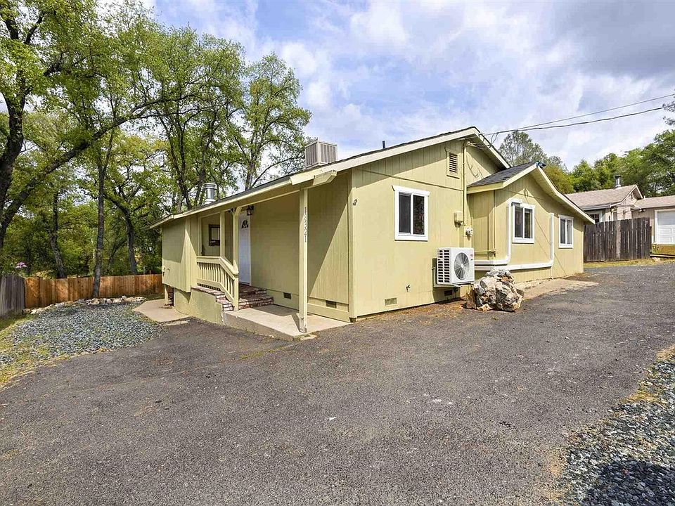 Charming Bungalow! This Tuolumne gem has been tastefully updated offering 3 bedrooms, 1 bathroom, and a 2 car garage with attic space plus an additional storage shed. Entering the home you are greeted with open concept living, dining, & kitchen. Living room features a faux accent brick wall with a barn door offering separation between your living & sleeping areas and a cozy, pellet stove for cold winter nights. The living room flows effortlessly into the kitchen and dining room which offers granite counter tops, electric stove & oven combo, and updated cabinets. Down the hall is 3 bedrooms, each offering updated flooring, paint, and spacious closets. The Bathroom is complete with updated flooring & a granite counter top vanity. Laundry is made easy with hookups, shelving and access out to the back patio. Enjoy the outdoors with a covered Redwood back deck perfect for summer BBQ's, & stamped concrete patio for entertaining. The Yard is functional and nearly fully fenced with Cedar wood. Home is complete with ductless mini splits in all bedrooms & living room, newer windows, public water & sewer, & XFINITY Internet making it easy to work from home. This home could be the perfect full time residence, 2nd home, or Air BnB! Home is just minutes to Black Oak Casino Resort and Tuolumne