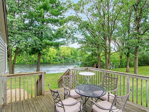Remodeled top to bottom this home may be smaller in sq. ft however is huge in charm and character with light and airy colors, design and decor! Remodeled bathrooms, newer flooring, paint, appliances and full kitchen update with high-end laminate counter-tops & more such as windows, AC and doors. Located along the river's edge with stunning views on the edge of town, enjoy quiet bonfires and over-sized 1 car garage for your boat, kayaks or canoe.