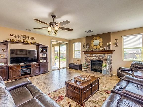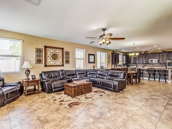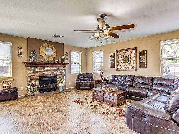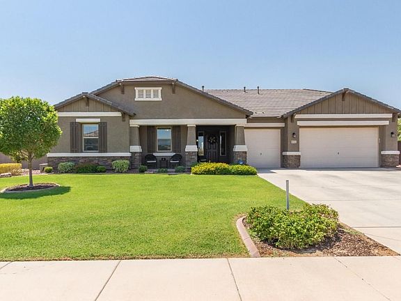 Check out this lovely home in Litchfield Park! This four bedroom offers a three car garage, Air conditioned RV Garage thru the RV Gate, brick trim and green grass. Custom color palate throughout, spacious great room with brick fireplace, formal dining. The eat in kitchen includes an Island with breakfast bar, marble counter top, unique backsplash, custom cabinets, pantry, stainless steel appliances, dbl wall oven, electric cooktop and built in microwave. Half bath for guests. The guest rooms have access to a full bath with dbl sink. The master bed has a sitting room, private patio entrance, full bath with dbl sink, separate shower/tub. The backyard has lots of green grass, raised firepit with sitting area, covered patio, gazebo. This one is sure to sell quickly, make it yours today!