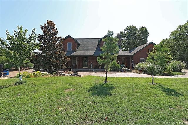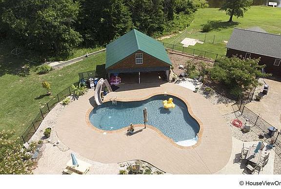 Sitting on just over 32 acres w/ 2 stocked ponds. The first is spring fed with landscaping all around. Featuring a private in-ground pool with pool house including half bath. The pool is a salt system w/ fiber optic lighting. Lovely large and inviting front porch, and a fabulous concrete back deck, with a great view of the larger pond. The extra large kitchen has been remodeled in the past year or so and features an extra sink for the coffee bar, wine rack, plate racks, specialty lighting, and custom shelving. Dining room has a spectacular view of the larger stocked pond. Large walk-in pantry is currently being used as an office. There are 2 main floor laundry rooms. The vaulted ceiling in living rm has theater lighting and a native stone fireplace. There are 2 master suites, upstairs suite has a jetted tub, separate shower. Main flr master w/ laundry rm conveniently located to hang clothes. The 56X80 shop w/ office, 4 garage doors with openers, bar, frig, microwave and a half bath.