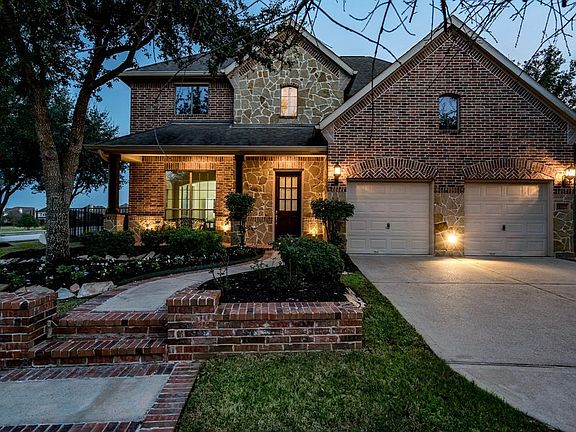 This stunning & dramatic waterfront Highland Home located in the #1 Master Planned Community in Houston will captivate you with it's 180 degree breathtaking panoramic lake views and year round glorious sunsets.The desirable stone & brick elevation w/ covered front porch will greet you & make you feel as if you have finally come home.The dramatic vaulted entry is just the beginning of the elegant charm of this luxurious home.Meticulously maintained gleaming hardwood floors,abundant floor to ceiling windows,triple crown molding,huge Chef's island kitchen w/stainless steel appliances,42"cabinets w/under mount lighting,gleaming upgraded granite counters,freshly painted,high ceilings,open flowing floor plan, oversized covred back patio &upper balcony to drench yourself in the serenity, sunlight & captivating views.Over sized Master retreat w/en Suite & jetted soaking tub.Look for the movie reel icon to watch the remarkable video that showcases this exquisite lakefront home.Immediate move in