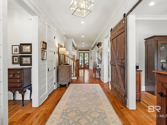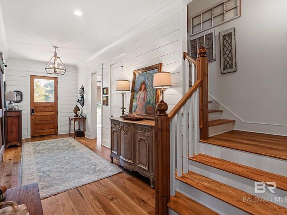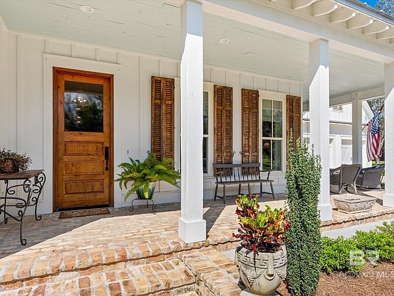 Situated on 2.5 acres in the heart of Point Clear, this stunningly beautiful custom-built home has it all. Located just 1.5 miles south of Fairhope, you’ll find everything you love close by. Enjoy shopping and award-winning restaurants downtown. Meet your friends at Lakewood “Swim and Tennis” Club. Both are just a short walk/bike ride away. Take a quick golf cart ride to Lakewood Golf Club & the Grand Hotel. Surrounded by shady Live Oaks, this secluded home has 4 bedrooms, 4 baths, and an optional 5th bedroom/nursery/music room. The architecture is described as charming farmhouse married w/ sophistication and includes all the modern comforts you can imagine. The open floor plan has high ceilings, white oak hardwood floors, solid wood doors and wooden beams, all complimented by a full masonry fireplace of old Chicago brick in the great room. The sunny kitchen has granite countertops with a center island made of pecan. The gourmet kitchen is equipped with a large farm sink, stainless Kitchen Aid appliances, two ovens, an ice maker and wine cooler. Enter the lovely (downstairs) primary bedroom through a vestibule where you will find a double vanity with walk-in closets, bath with a soaking tub and separate shower. There are 2 bedrooms with an adjoining bath upstairs. The main house has a central vacuum, tankless hot hater, a full house generator, irrigation system and a fire pit. The kitchen and great room open to the fabulous screened in porch spanning the entire back of the house. Relax or entertain on a slate tiled terrace overlooking the expansive backyard with tranquil Live Oaks and peaceful views of the surrounding gardens. There is a double garage plus a 25’x25’ heated and cooled workshop. (Some of the woodworking equipment could convey) There is a “she-shed” with power and water; it’s a must-see! You must see it to fully appreciate this wonderful home. Make your appointment today; you won’t be disappointed! All updates per seller. Buyer to verify sq footage. B