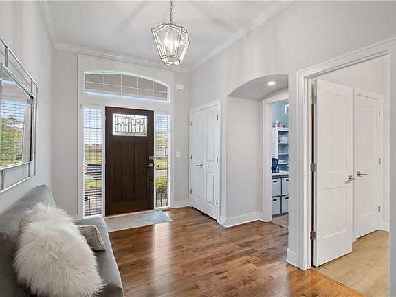 Why build? This gorgeous 1.5 story built by Hilmann Home Building is lightly lived in and shows like a model! Open floor plan features large great room with upgraded random width rustic hickory floors running through to the kitchen and elegant dining area. Chef’s kitchen features an oversized island and a HUGE butler’s pantry/ with granite tops, 2nd oven, and prep area. Main floor master bedroom walks out to covered, screened in patio. Large master bath w/ huge walk-in closet, walk-in shower & free standing soaker tub. Upstairs has guest bedroom with private bath & 2 bedrooms which share a hollywood bath. Amazing loft area for studying, games or movies! Home is also zoned for heating and cooling which will provide comfortable living on all the floors. Residents have access to sister divisions pools until their pool is built. Stoneridge Park Pool, Stonebridge Meadows Pool, Stonebridge Trails Pool, Stonebridge Village Pool. Located in coveted Riverstone with award winning Blue Valley school! Overland Park Arboretum, Heritage Park, & Bluhawk shopping area just minutes away.