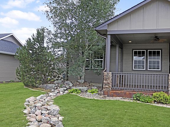 You are welcomed to this amazing home by a spacious, covered, stamped concrete porch, just perfect for a patio table and chairs. Upon entering, you will find vaulted ceilings with open plan living. There is an office with double doors, transom window and alder wainscoting off the entry. The house has a spacious living room with a stone, pellet fireplace and chef's kitchen and dining room. The kitchen is definitely the heart of the home and has granite counters, alder cabinets, tons of counter space and seating, stainless appliances and stone accents on the backsplash and counter. You will find sliding glass doors that lead onto another covered patio from the dining room. Just off the kitchen you will find a laundry/mudroom with cabinets and bench that lead into the oversized, 3-car heated garage. You will find lots of storage, metal wainscoting, built in coat tree and be the envy of all the neighbors with this garage! The main floor also hosts a guest bedroom, full bathroom, and the primary suite which boasts a tray ceiling, tons of natural light and a jaw-dropping bathroom with walk-in tiled shower, deep soaking tub, double vanity and walk-in closet. There is a great loft space above the garage which would be a perfect playroom, homeschool room or flex space. Downstairs you will find 3 bedrooms with egress, one of which has tons of custom built-ins that could be used for a craft room, quilting room, reloading room or lots more. You will also find a full bathroom and a family room complete with entertainment center and infrared sauna.