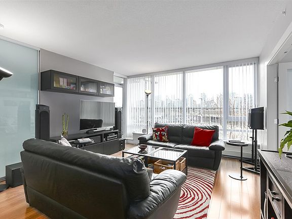 Spacious 2 bdrm/2 bath with VIEWS to City in the extremely popular FOUNDRY BUILDING. Wonderful open floor plan with loads of windows creating spacious feel & loads of light. The Second bdrm with closet was customized to make it larger than normal for this floor plan. This LEED certified, eco friendly building is at the forefront of energy saving. BONUS: A rare 2 parking stalls come with this unit plus a storage locker. Vibrant community, only steps to Olympic Village, Creekside Rec Center, Sea Wall, parks, restaurants, ,sky train, & Canada Line. Foundry Amenties; community gardens, courtyard, playground and rec facilities. Pets & rentals allowed. No short term rentals.