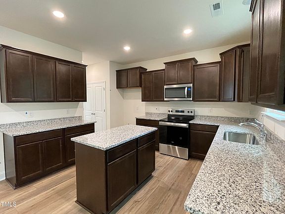 Welcome home to one of lowest prices new construction single family homes in Raleigh! The Elmhurst plan features 3 bedrooms, office/dining room & loft. Kitchen w/granite countertops & island, LVP flooring. Eat in breakfast area and large family room w/ lots of windows. Slider leads to patio & yard. Large loft area for entertaining. Owners suite w/oversized walk in closet, owners bath w/dual vanity sink, quartz countertops, & walk in shower. Fantastic location! Just 15 minutes to Downtown Raleigh! Close to walkingtrails & shopping.