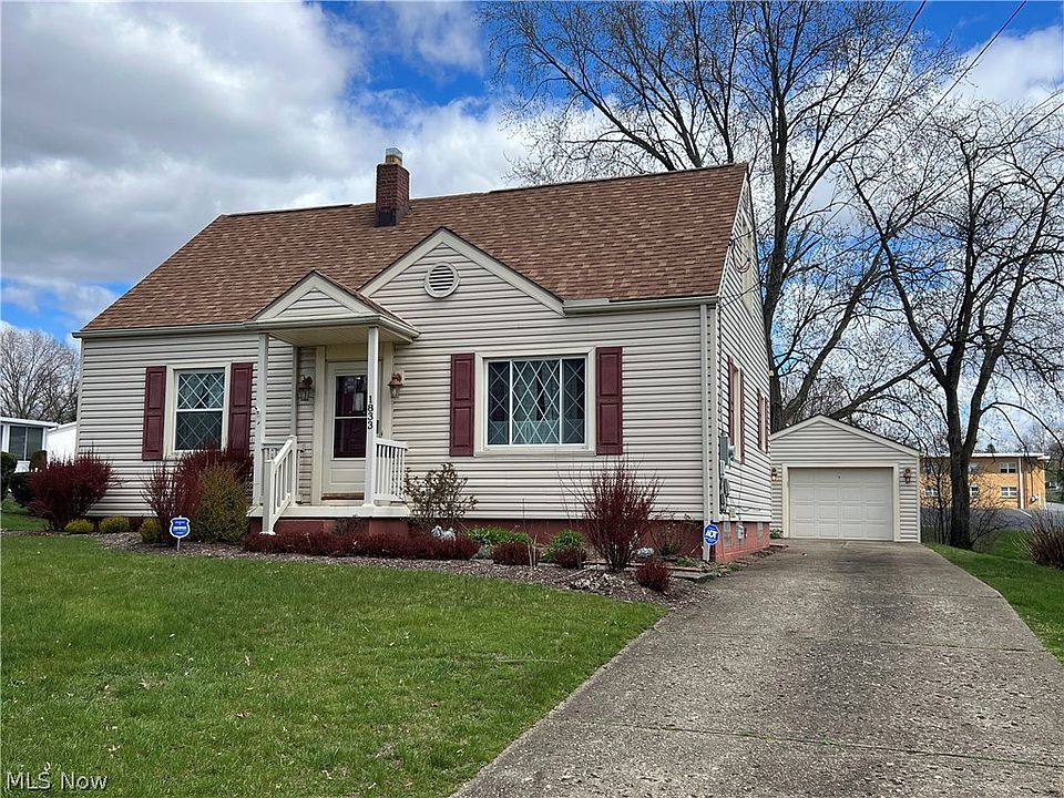 Welcome to your new home in Firestone Park/Happy Hollow! This charming cape cod residence boasts 4 bedrooms and 1.5 baths, recently remodeled to perfection. Step inside to discover an inviting open floor plan where the eat-in kitchen seamlessly flows into the cozy living room, adorned with stylish laminate flooring throughout. The kitchen is a chef's dream, featuring nice appliances including a KitchenAid dishwasher, complemented by beautiful white cabinets and a stunning tile backsplash. With ample space, meal prep and entertaining become a joyous affair. Accommodating your lifestyle needs, this home offers 4 bedrooms, with 2 conveniently located on the first floor, where you will find hardwood floors beneath the carpet. A full bathroom with a tub/shower completes the main level, ensuring comfort and convenience for all. Upstairs, you'll find two more spacious bedrooms along with a convenient half bath, providing flexibility and privacy for family members or guests. Outdoor living is equally delightful, with a large 1.5 car garage featuring a newer door and opener, complemented by a convenient carport/covered patio in the level and private backyard. Additional features and updates include a brand new 200 AMP electrical service and panel, newer roof, vinyl siding & windows, along with glass block basement windows for added security and energy efficiency. A nice washer and dryer along with a large utility sink are included in the lower level. Storage solutions abound with built-in cupboards, cabinets, and drawers throughout the home. Seize the opportunity to make this house your own and enjoy the perfect blend of comfort, style, and functionality. Don't wait—schedule your showing today and experience the lifestyle you've been dreaming of!