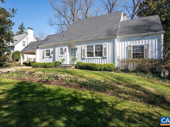 Located on a corner lot on coveted Fendall Ave, this timeless board and batten cottage is as charming as they come. Pulling in the drive you are greeted by a magnificent Ash tree. Every inch of the house and property are truly enchanting. Cozy rooms spill from one to the next in a seamless flow. The updated kitchen enjoys a beautiful view to the front yard and features all Bosch stainless appliances. Opposite the kitchen is a breakfast/seating area with access to the covered parking, a wall of windows, and doors leading to the patio for for outdoor dining. A traditional dining room is well situated nearby and perfect for entertaining. The living room, the heart of the home, complete with a wood burning fireplace, leads to two first floor bedrooms which share a full bath (one bedrooms has it's own second fireplace). Passing through a quaint library with picture window, built in shelves, and other architectural surprises, is a gracious family room. The upstairs primary suite, its own private oasis, is complete with several closets and a well appointed bath. Gleaming hardwoods and a new roof. Walk to UVa events from your front door. You wont want to miss this rare opportunity to live in one of the city's most loved neighborhoods.