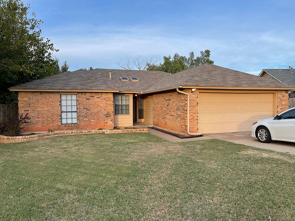Wonderful four bedroom, two bathroom, two car garage home on oversized lot in North Edmond. Entire inside of house has been painted and ceilings redone. Home is close proximity to shopping, restaurants and parks. Open living room and dining room feature high ceilings with a beautiful floor to ceiling brick wood-burning fireplace, wood floors, and lots of windows. Large backyard with oversized patio that backs up to a green belt. Kitchen contains a wall pantry, sitting area, large stainless steel sink, refrigerator, microwave, and open view into the living area. Quartz countertops throughout home. Master bedroom includes built in vanity, walk-in closet, and access to the back patio. Interior laundry room with washer and dryer included. Pets are a case by case basis with a non-refundable pet deposit, breed restrictions apply. NO CATS! NO SMOKING OF ANY KIND! Tenants must show proof of renters insurance and utility connections prior to occupancy. Tenants are responsible for utilities, lawn maintenance, and renters insurance. $1650 security deposit will be required with first month's rent, along with non-refundable pet deposit (if pet is approved). Minimum one year lease.