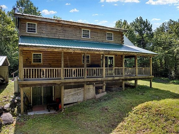 Warm summer nights, stories around the firepit, quiet country roads and over 35 acres to explore, does it get any better…Yes it does! This property has direct access to the snowmobile trails. A vacation home or your forever home this property checks the boxes. Built in 2008 is this wonderful log sided home. Warm pine ceilings and walls throughout the home. Living room with maple floors; massive fireplace and vaulted ceilings. Kitchen is fully applianced with wood cabinetry and island. Loft master bedroom with walk in closet. Two full baths and one with a jacuzzi and large walk in shower. The square footage includes the additional 300 sq ft in the finished basement with a Family room with woodstove and bedroom. With your detached garage and shed you have plenty of storage to store the toys. With high speed internet, work remote or commute the choice is yours. Get ready to explore the Adirondacks and your property. Work life balance this home is it!