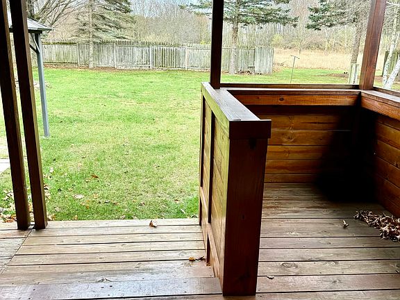 3 Bedroom Ranch in the perfect location North of the City of Manistee in a lovely subdivision across from from Munson Manistee Hospital. Home sits on a partially fenced yard with a ramped entrance & covered deck in the back with patio that is set up for a hot tub. Eat-In Kitchen with slider to deck & all new Stainless appliances. Primary Bedroom has 1/2 Bath attached. Basement is clean, dry with a family room with a bar, also a large storage area & laundry area. Attached 2 stall garage completes this great home.