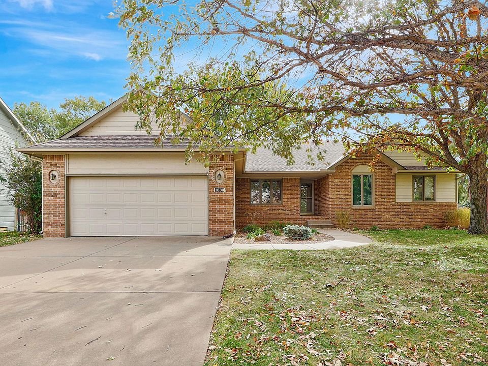 5 bedroom, 3.5 bathroom home for sale in the Maize School District. Located in a quiet cul-de-sac near 21st and Maize. Upstairs has newer wood laminate flooring throughout. Step out of the large kitchen onto the covered deck. There's also a formal dining room. 3 bedrooms upstairs including a primary suite with attached bathroom. Downstairs has 2 additional bedrooms and full bath. New carpet in bedrooms and family room. There's also a large storage area with a workshop. Home also has a water softener and irrigation well.