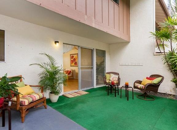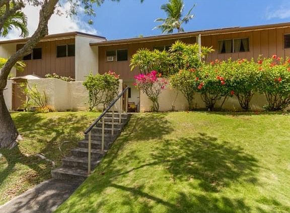 This very private 3-bedroom, 2.5-bath unit is tucked away on desirable Oko St. at the quiet back of the complex against the Kalaheo hillside with soothing mountain views and no neighbors behind. This spacious townhouse has a large outdoor lanai great for kids and pets, and the storage shed is included. Move-in ready and waiting for your upgrades. This complex has a pool, hot tub and clubhouse. Parking is just steps from the unit. This won't last long! Walking distance to Aikahi Elementary, Aikahi shopping plaza and a short drive to Marine Corps base, H-3 access and Kailua town. Sold As Is.
