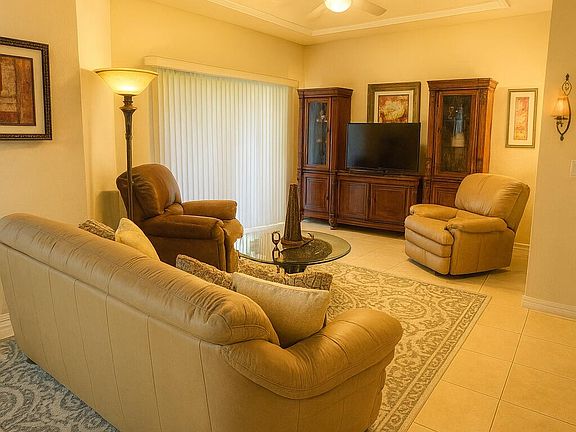Come discover this beautiful, pet-friendly villa with no rental or age restrictions! Recent updates include a new roof (2023), a screened patio. Inside, you'll find tile flooring with cozy new carpet in the bedrooms, a spacious primary suite with private patio access, two closets, dual sinks, a large shower, a linen closet, and abundant natural light.The kitchen features white 42-inch cabinets, upgraded appliances, and an adjacent laundry room with extra cabinets and a large sink for added convenience.HOA dues include cable, internet, water, trash, exterior insurance, lawn care, and access to resort-style amenities such as a pool, gym, dog park, putting green, and clubhouse.