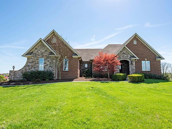 This place is a totally unbelievable piece of property. When you walk in the front door, you will immediately feel the WOW factor. Great Open Floor Plan with a large master suite on first floor with an additional two more beds and bath. Kitchen is over the top with some of the best appliances that is on the market, including a commercial sub zero fridge. From the living area and Master bedroom you have access to the large covered Trek deck overlooking nothing but farm land. In the full finished walk out lower level, there are an additional two bedrooms along with a bath. There is another kitchen in the lower level and a very large entertainment room. Home has some beautiful White Oak flooring along with solid oak trim and doors. Central Vac System, Top of the Line Pella Doors and Windows, and oversized brick completes this beautiful property. There is also an additional 13 +/- acres that can be purchased with this property asking price $59,900. Move In Ready! Motivated Sellers!!