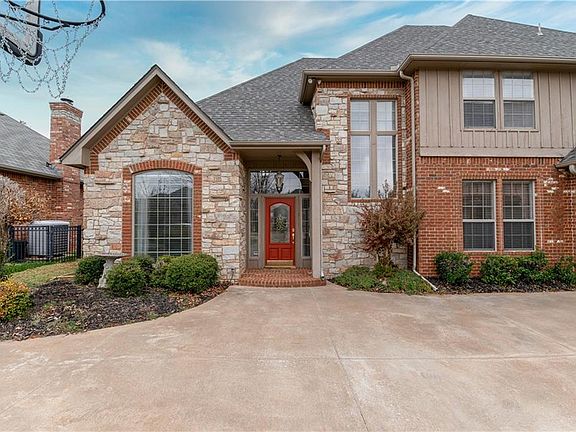 This magnificent home is located on the 15th Fairway in Oak Tree, Edmond, offering stunning views of the golf course beyond its backyard. The interior of the house is spacious, featuring a beautifully designed kitchen with exquisite granite countertops, a butler's pantry, and an elegant formal dining room adjacent to the entrance. On the lower level, there is a designated office area and a primary suite, complete with a cozy fireplace and an expansive en suite. Upstairs, there are two generously sized guest bedrooms with a shared Jack and Jill bathroom, and a third guest bedroom with a private en suite. Additionally, the massive game/flex/bonus room comes with a large storage closet and an additional office space. The neighborhood offers numerous amenities, including a round-the-clock guarded gate entrance.