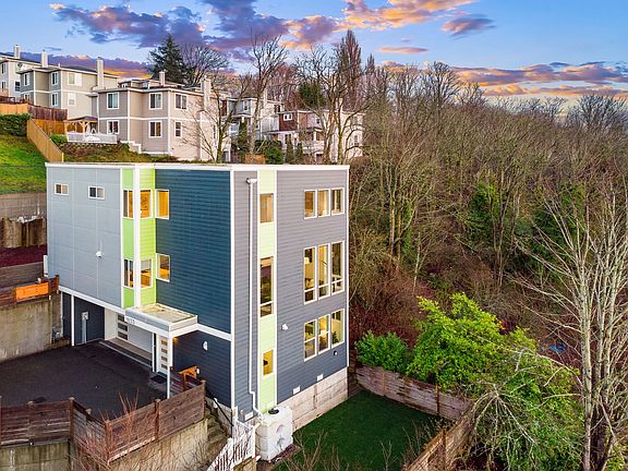 Surround yourself with luxury in this stellar 2016 built modern home. Privately perched to capture bird's eye Western exposure views from all 3 levels. A perfect antidote to Seattle's grey winter days.. natural light and designer finishes abound. Ignite ambience in the stately living room with gas fireplace. Invite conversation with guests at the kitchen island or in the open dining area. Socially distance on the VIEW patio and connect with friendly neighbors. Ready to retire for the evening? A sophisticated primary suite with spa-like bath awaits upstairs with 2 more BDs, laundry room and flex nook. Other features including a guest suite/office, A/C, fenced yard, 2-car gar. Close to all things Beacon Hill, Georgetown and Downtown with quick access to freeways and light rail.