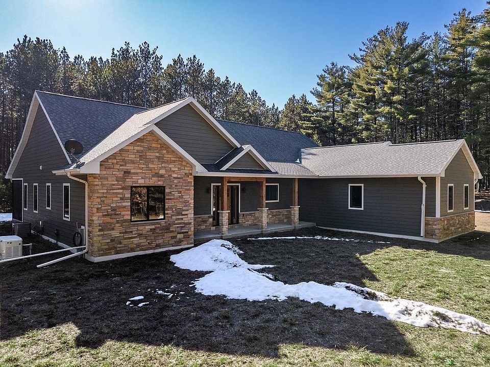 Experience modern elegance & timeless design in this stunning, like-new home built in 2018, nestled on 6+ acres near picturesque Castle Rock Lake & Adams County Park. Custom timber accents, stone facade, & LP smart siding greet you to this 3 BR, 2 BA haven. Enjoy turn-key living in a tranquil lakeside setting w/a screened-in porch featuring a hot tub, a great room w/vaulted ceilings & fireplace, a luxurious primary BR with ensuite office space, tile shower, therapeutic tub, & walk-in closet. Unfinished basement offers buyers future customization & expansion potential. A Generac generator with extended warranty ensures peace of mind during power outages. HOA amenities include clubhouse, pool, tennis courts, deeded lake access, and more.