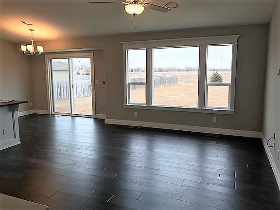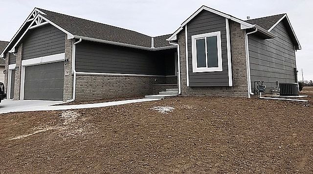 NEW HOME! LOWER SPECIALS!!! This very popular, "Justin" floor-plan is a spacious, open 3 BR, 2 BA split-bedroom ranch with a 3-car garage featuring carriage-style garage doors. This home sits on a 1/3-acre lot in a quiet neighborhood on the southwest edge of town with a country feel to it but is super close to schools and lots of amenities. Kitchen has granite countertops, staggered cabinets with crown molding, an island with sink, a walk-in pantry, and stainless appliances. Living room has wood-wrapped, cottage-style windows and vaulted ceilings. Master bedroom has vaulted ceilings and master bath features granite countertops, a two-sink vanity, and shower. Laundry is on the main floor and has a door into the master closet, which also has a door into the master bath! The unfinished basement is framed for two more bedrooms, a family room and a bath (tub/shower installed!). Entire home is wired for surround sound. To help with new landscaping, you can contact the City of Haysville's Economic Development Director and you'll receive up to THREE FREE TREES!