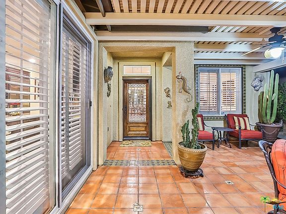 With exquisite craftsmanship and attention to detail and with over $120,000 in upgrades, this stunning, rarely available Canyon IV model is truly a one-of-a-kind property. Configured with 2 master suites plus a separate casita, some of the unique features of this elegant home are custom cove moldings & window trim; plantation shutters, upgraded appliances; custom cabinets & granite countertops; custom tile floors with marble in-lay; marble floors in kitchen & baths; marble fireplace & solar. The exterior spaces of the home are just as spectacular including a covered central courtyard & back patio with custom tile & pavers, backyard gazebo & bar, gorgeous desert landscaping plus artificial turf, capped off with beautiful mountain views. Add to this the wonderful amenities of the Four Seasons 55+ community including lodge, gym, swimming pools, spas, tennis courts, library, planned events and more. Don't miss this rare opportunity to experience the finest that Four Seasons has to offer.