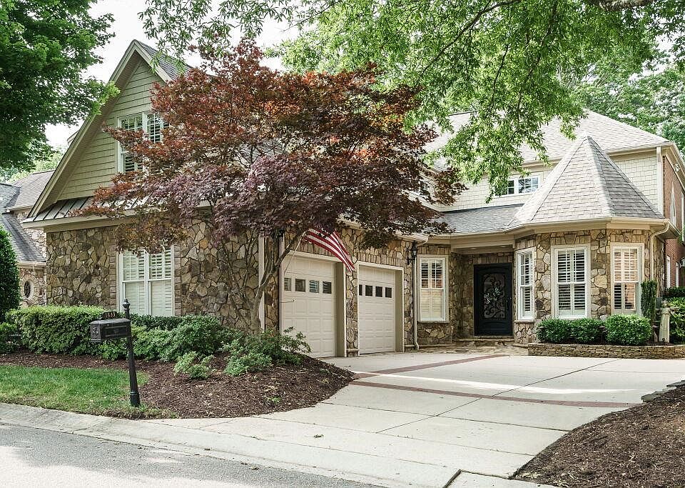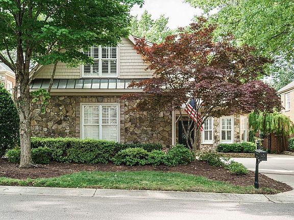 Casually elegant home conveniently located in the heart of N Raleigh. Fantastic location. Move-in ready. This well loved home has it all, first floor primary suite with fireplace, spa bath, his & her water closets. First floor also offers an office with built-ins, full bathroom, gourmet chef's kitchen, butcher block island, granite counters and stainless steel appliances, cozy den with fireplace and built-ins, dining room with fireplace adjoining the piano room/formal living room. Second floor offers two additional bedrooms each with private baths, second office/craft room with built-ins, large bonus room and flex room/storage. Escape to your 3-season sunroom and backyard private oasis. Front lawn and landscape is maintained by the HOA. Exclusive home in a fabulous neighborhood.
