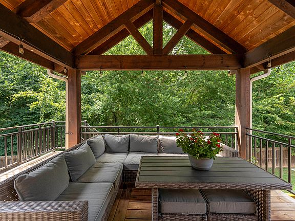 1833 W. Finley River Dr., Nixa, MO - This absolutely stunning home boasts a spacious and comfortable layout with a blend of modern updates and rustic charm. Features include five bedrooms and three bathrooms, offering ample space for a large family or guests. The kitchen has been recently updated to enhance functionality, making it a focal point of the home. One of the highlights is the generously sized A-frame covered deck which provides a perfect spot for outdoor relaxation and entertaining. Below the deck, there is a patio, extending the outdoor living space and offering additional options for enjoying the natural surroundings. The house includes two living areas, providing plenty of room for both daily living and special gatherings. The walkout basement adds versatility and convenience, potentially serving as a recreational area or additional living space. An 'oversized' John Deere room suggests ample storage for outdoor equipment or hobby items, catering to practical needs. Located in Riverfork Estates and served by Nixa Schools, this home benefits from a desirable neighborhood setting with access to community amenities which include river access and a neighborhood picnic area.