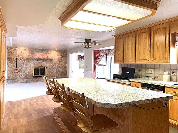 Tudor Style Home in prime, West Kaysville neighborhood. Home sits on very large, .68 acre lot. The newly remodeled kitchen area, and family rooms, with solid quartz countertops and bar seats. New paint on main floor & basement family rooms and staircase and room for equity. 3,700 soft, 5 Bedrooms, 3.5 baths, with retro bath decor and large master suite with walk-in closet. Open basement area with slate pool table (negotiable), and 3 fireplaces throughout (1 Alpine Wood Burning & 2 Gas Log. 2 high-efficiency furnaces and 2 A/C compressor units. Security system installed (must be activated) with exterior security cameras. "Lite Touch" low-voltage interior lighting system. 2x6 construction with extra insulation in walls and max-efficiency attic insulation. Insulated windows throughout. Swimming pool with sand filtration and solar heating. Formal living, formal dining, main family room with fireplace, annex entertainment/TV area with fireplace, solid quartz countertops, stainless appliances, utility/mudroom, laundry with upper/lower cabinetry, entry/foyer area, oversized 2-car garage, extra-large driveway and RV parking with 30 amp power hookups. fruit trees, irrigated garden area, full sprinkler system with timers, gas hookup for BBQ on patio/pool area, redwood decking, fully fenced backyard, huge side-yard area, extra storage, and shelving, canning kitchen with sink and stove. Call for an appointment—A Must See! View aerial video presentation at https://youtu.be/mhPEm4haK94 (If the link is not clickable please copy and paste into browser. Call Jeff 801-860-8833.