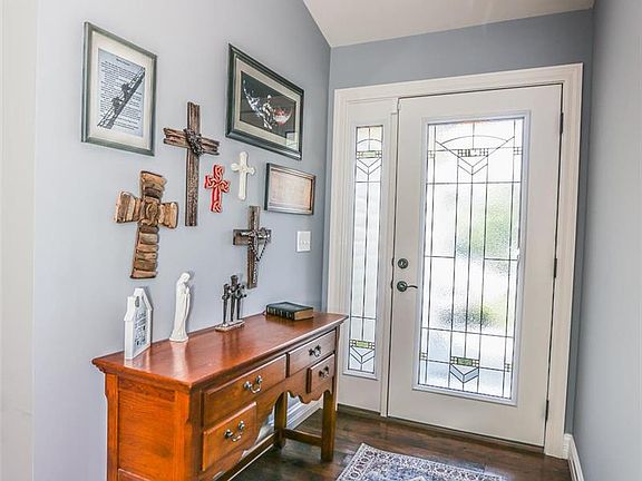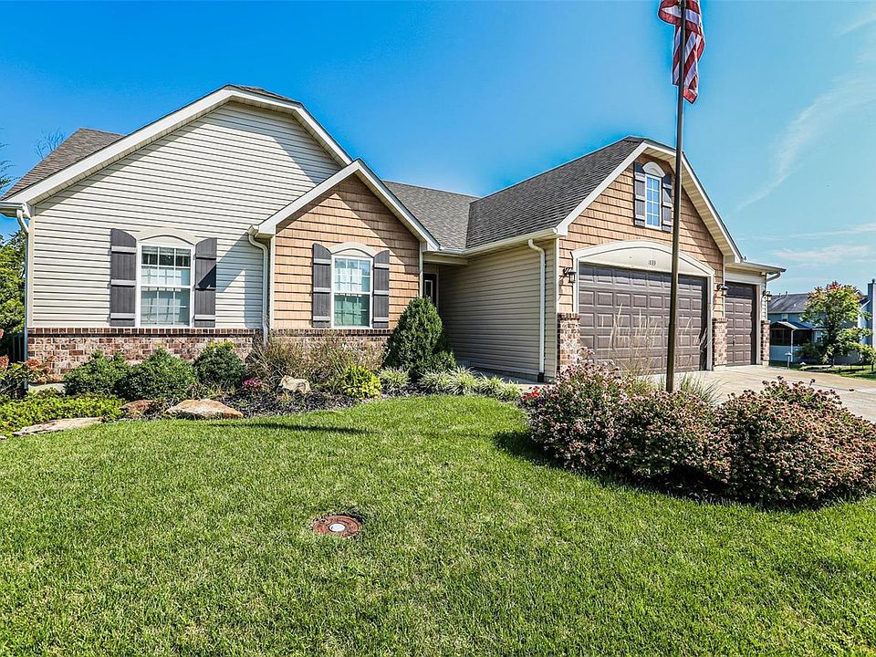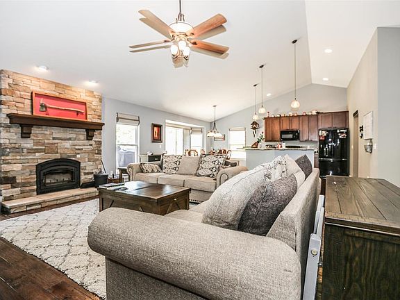 Stunning Flower & Fendler Stratford model ranch home with 3 car garage on a cul-de-sac. If you are looking for low maintanence when it comes to yard work this is your new home! Plenty of space for out door entertaining with a spacious deck for BBQing, large patio and firepit area! You will love the inviting open floor plan for indoors entertaining. Vaulted great room with a stone front raised hearth wood burning fireplace. The Great room, Kitchen & Dining room have beautiful enginered wood flooring. The Kitchen offers a spacious breakfast bar, granite counters, maple cabinetry with crown, pantry and recessed lighting. The breakfast room has a bay window bringing in natural lighting and access to the deck. The master suite has a bay window, walk in closet and the master bath has a seperate shower and tub. 2 additional main floor bedrooms and a main floor laundry. The mostly finished walk-out lower level has a huge family room, wet bar, 4th bedroom and a full bath.