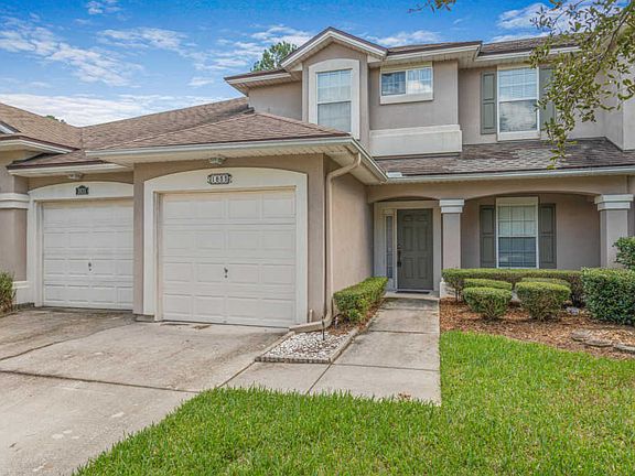 Pine Lake townhome with garage is turn key and ready for a new owner! Wide open floor plan and 20 foot celings are two key features that this home has to offer. Large kitchen with plenty of cabinet/pantry space with views directly to the living room makes entertaining a breeze. Owner's suite is conveniently located on the first floor with ensuite bath featuring dual vanities. Second floor stair landing boasts views of the living room from second story. All bedrooms are spacious with ceiling fans and large closets. The screened patio is perfect for relaxation surrounded by lush trees and landscaping. Live a maintenance free lifestyle with LOW HOA and enjoy access to luxury amenities. Conveniently located near restaurants, shopping, NAS JAX & I-295.