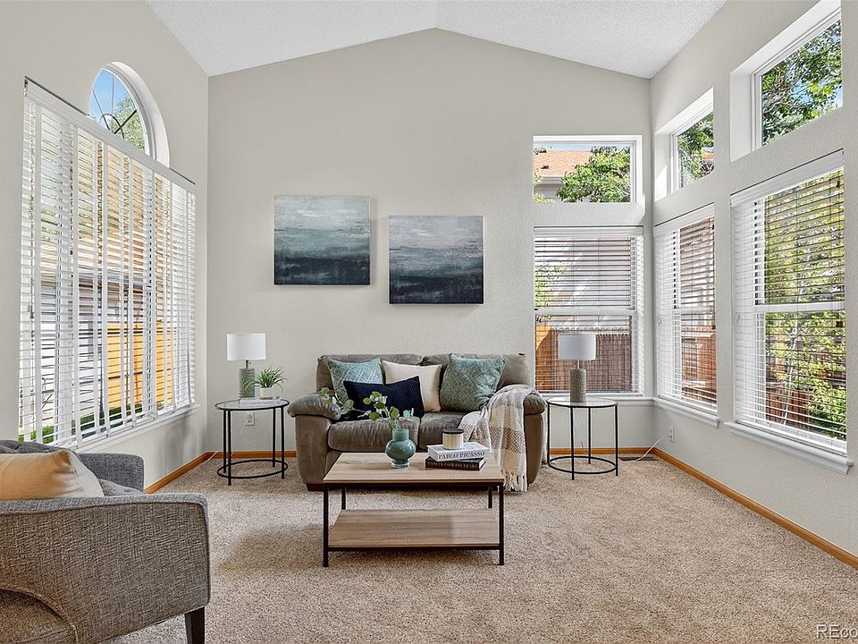 This beautifully maintained tri-level home offers 3 bedrooms, 3 baths, and 1,623 square feet on the main and upper levels, with potential to expand in the unfinished basement. Highlights include walnut-stained plank laminate flooring, hardwood floors in the kitchen and entry, and fresh interior paint throughout. Nestled on a landscaped lot with mature trees, a level backyard, and a relaxing deck, the home combines comfort and charm inside and out. The hardwood entry leads into a light-filled kitchen with vaulted ceilings, white soft-close cabinets, updated stainless steel appliances, and a welcoming eat-in area overlooking the cozy family room, which features a gas fireplace, soaring two-story ceilings, and sliding glass doors to the backyard. This level also offers a powder bath and dedicated laundry room. Upstairs, a full bath is shared by two bedrooms, while the private primary suite is set on its own level with vaulted ceilings, a ceiling fan, walk-in closet, and ensuite bath, creating a peaceful retreat. Additional updates include a new irrigation timer (2020), new carpet and laminate flooring (2017), new 4" front gutters (2022), and a new garbage disposer (2023), New Irrigation Drip System added (2025).