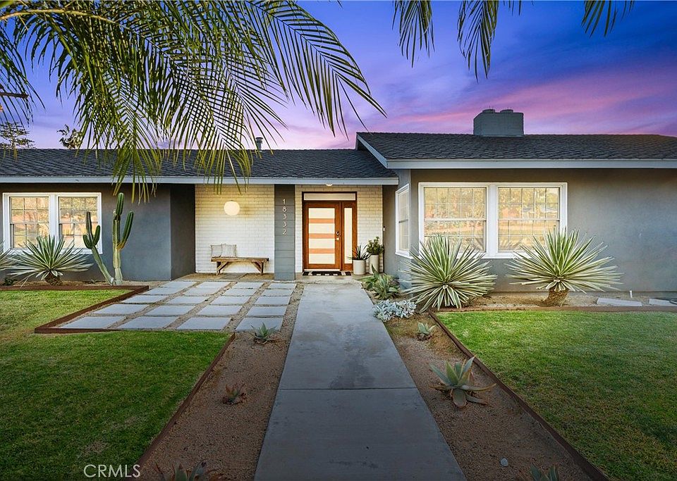 Welcome to 18332 Lassen Drive, a stunning North Tustin gem where mid-century modern flair meets contemporary luxury. This fully remodeled 3-bedroom, 2-bathroom home boasts a seamless blend of timeless design and modern functionality. Located on a generous corner lot, this property offers RV parking, a sparkling pool, spa, and an outdoor kitchen with a built-in BBQ, making it the ultimate retreat for entertaining and relaxation. Step through the chic front entry into a light-filled living space accentuated by clean lines, natural textures, and stylish accents that exude a mid-century aesthetic. The spacious family room centers around a sleek white brick fireplace, perfectly framed by recessed lighting and wide-plank wood flooring throughout. Adjacent to the living area, the kitchen is a true masterpiece, featuring custom cabinetry in a bold teal tone, pristine Carrara marble countertops, a geometric tile backsplash, and premium stainless steel appliances. A bright breakfast nook invites you to start your mornings with views of the lush outdoors. The indoor-outdoor flow of this home is truly unmatched. Oversized windows and sliders bring in abundant natural light while providing easy access to the backyard oasis. Out back, you'll find a resort-like setting with a shimmering pool, a spa for unwinding, and a fire pit surrounded by cozy seating. The outdoor kitchen and BBQ area are ideal for al fresco dining, and the manicured landscaping ensures both privacy and beauty. The primary suite is a serene retreat with a spa-like ensuite bathroom featuring modern fixtures and designer tile. Two additional bedrooms offer versatility for guests, an office, or a growing family. Every detail of this home has been thoughtfully curated, from the spacious indoor layout to the welcoming curb appeal, complete with drought-tolerant landscaping and stylish exterior accents. Situated in the heart of North Tustin, this home is close to top-rated schools, local parks, and convenient shopping and dining options. Whether you’re hosting a poolside gathering or enjoying a quiet evening in your mid-century sanctuary, 18332 Lassen Drive is a home designed to inspire and delight.