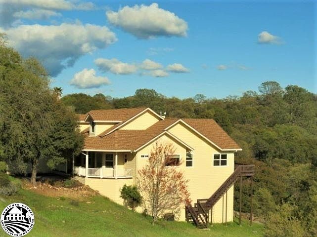 PERFECT LOCATION ON 4.7 VIEW ACRES with 3 car extra deep garage! Single level home with gigantic master suite. Private master bath with tub, separate tiled shower, dual sinks and closeted toilet. Spacious master closet! Lovely shaded front porch welcomes you into entry with office and formal dining room. Sunny gourmet kitchen features island with downdraft cooktop, built in dishwasher, wall microwave and oven, plus stainless refrigerator and pantry. Breakfast bar plus eat-in kitchen area with slider to sunny private rear deck featuring stunning distant views! Enjoy 3 bedrooms, 2 full baths plus laundry room with garage access featuring room to expand workbench or store large toys. Just the right size 2,503 square foot home with huge under the house stand up storage area to expand if desired. Attractive propane fireplace. Newer exterior paint. Whispering Woods features a popular 2+ mile walking loop to enjoy this lovely area with a country feel, yet only a mile to The Junction Shopping Center. Enjoy the great outdoors in Tuolumne County! Popular local restaurants, live theaters, Pinecrest and Don Pedro lakes, Yosemite, plus numerous other fishing, hiking and swimming possibilities nearby. Note two virtual tours!