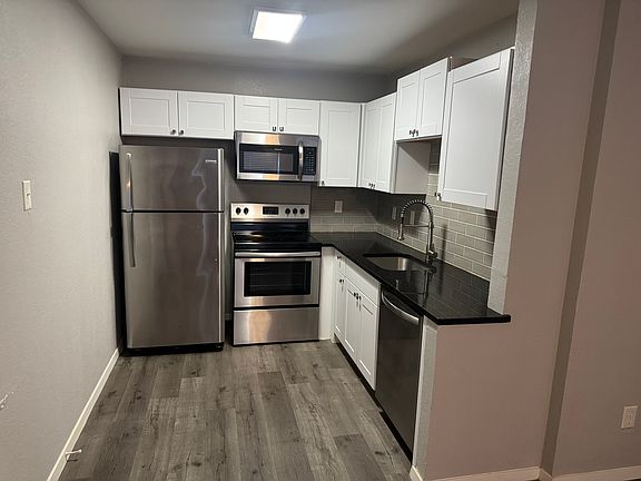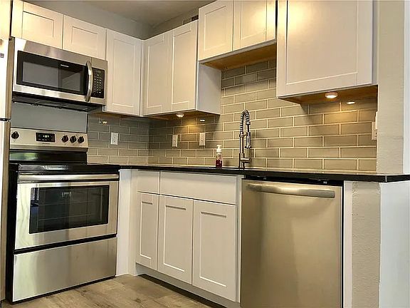 This updated, clean 448 SF condo located on the first floor has beautiful granite countertops, new white shaker cabinets with gray subway tile backsplash, and Stainless Steel appliances. It also includes luxury vinyl flooring throughout the entire unit (no carpet), updated bathroom, newer washer and dryer, and balcony with extra storage. Includes one parking spot as well. The property includes multiple swimming pools, a community room, and a picnic area. Owner pays for water and garbage pick up. Renter pays for all other utilities.