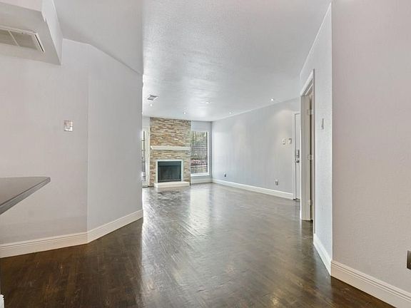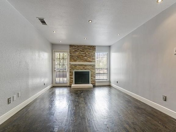GREAT TWO BEDROOM ONE BATHROOM CONDO IN THE HEART OF DALLAS! Gorgeous modern finishes throughout. Relax in the open family room boasting two windows, floor to ceiling brick fireplace and gorgeous floors. Relish in the kitchen boasting red cabinets, tile back splash, stainless steel appliances and electric cooktop. Refrigerator remains! Escape to the master suite that is light and bright with a walk-in closet and access to the patio. Secondary bedroom is spacious with full length mirror. Elegant bathroom with gorgeous walk-in shower and plenty of cabinet space. Property is located in a gated complex and features one assigned parking space, club house and community pool.
