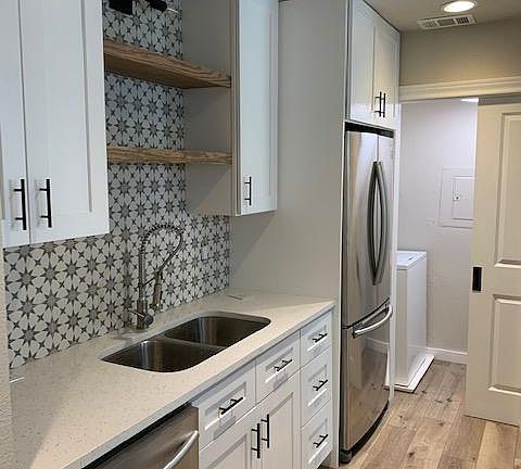 Unit #811 NON SMOKING RESIDENCE Gorgeous downstairs condo completely renovated. Solid wood kitchen cabinets with soft close drawers and doors, new stainless appliance, ice maker and quartz countertops. New bathroom includes new tub and tile. All new flooring and light fixtures thru-out. Washer and new dryer in unit. Available May 1, or sooner. HOA will perform criminal and background check and must be cleared before lease is signed. Gated community and One Covered Parking spot. $1,200.00 is the total rent, which includes 1 covered parking spot and water/garbage. No hidden fee's. This is perfect for one person. Call to schedule a viewing. Water and garbage paid - NO smoking. 1 Covered parking spot