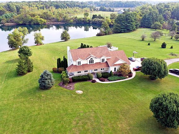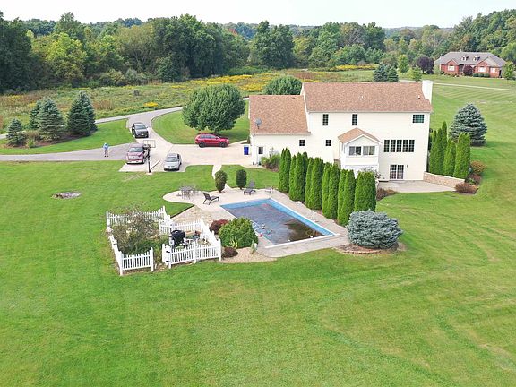 OPEN HOUSE 10/6 and 10/13/19. Beautiful house on private road that is setting on 2.817 acres professionally landscaped with a large stocked pond behind the home. 4 spacious bedrooms, den, office or 5th bedroom on main floor, 4 full baths, central vac, theater room equipment and couch will stay. walkout basement mostly done needs only paint and flooring, large open kitchen to the eating area and great room, all appliances will stay, high efficiency Geothermal water furnace and central air, oversized 3 car garage, low utility bills, Generator back up, large master suite with walk in closet, double headed tiled shower, whirlpool tub, stool closet and double vanity, large laundry room, large walk out patio with stoned retaining walls, 17x21 walk in storage room at end of hall upstairs could be used as another BR, Inground pool. This Perfect, quiet and relaxing home is in Leo schools and has it all.