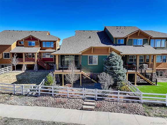 Enjoy a maintenance-free lifestyle in the highly sought-after Anthology community with this stunning 4-bedroom, 3-bathroom paired patio ranch home. Ideally positioned on a spacious private lot that backs to serene open space. A professionally managed HOA covers landscaping and all snow removal for low-maintenance living. Step inside to an inviting open floor plan featuring a chef’s dream kitchen with a massive Quartzite island, professional-grade Monogram appliances, and elegant matte slate blue subway tile. A three-sided stacked stone fireplace adds warmth and charm to the main living area, while the vaulted great room boasts a striking stone accent wall. Just off the great room, a large Trex deck offers the perfect spot to take in tranquil Colorado evenings. The primary suite is a true retreat, complete with a double-sided electric fireplace, a luxurious en-suite bath featuring heated tile floors, a freestanding soaking tub, Quartz countertops, a bidet, and a spa-like shower. A secondary bedroom on the main floor includes a built-in Murphy bed/desk, providing versatility, with a full bath conveniently located down the hall. A spacious laundry room completes the main level. The fully finished lower level is ideal for multi-generational living, offering two large bedrooms, an expansive family room, a full bath, and a second kitchen equipped with a range, microwave, dishwasher, and full-size refrigerator. The community at Anthology is second to none with a pool and clubhouse, food trucks, pool parties, and movie nights in the summer, and various activities throughout the year such as Easter egg hunts, cookies with Santa, and a Halloween decorating contest and parade. Come check it out!