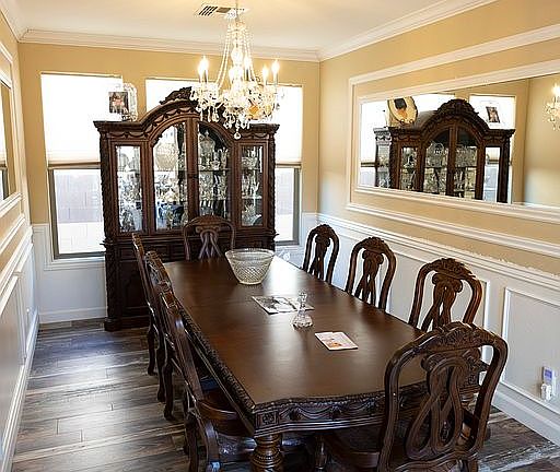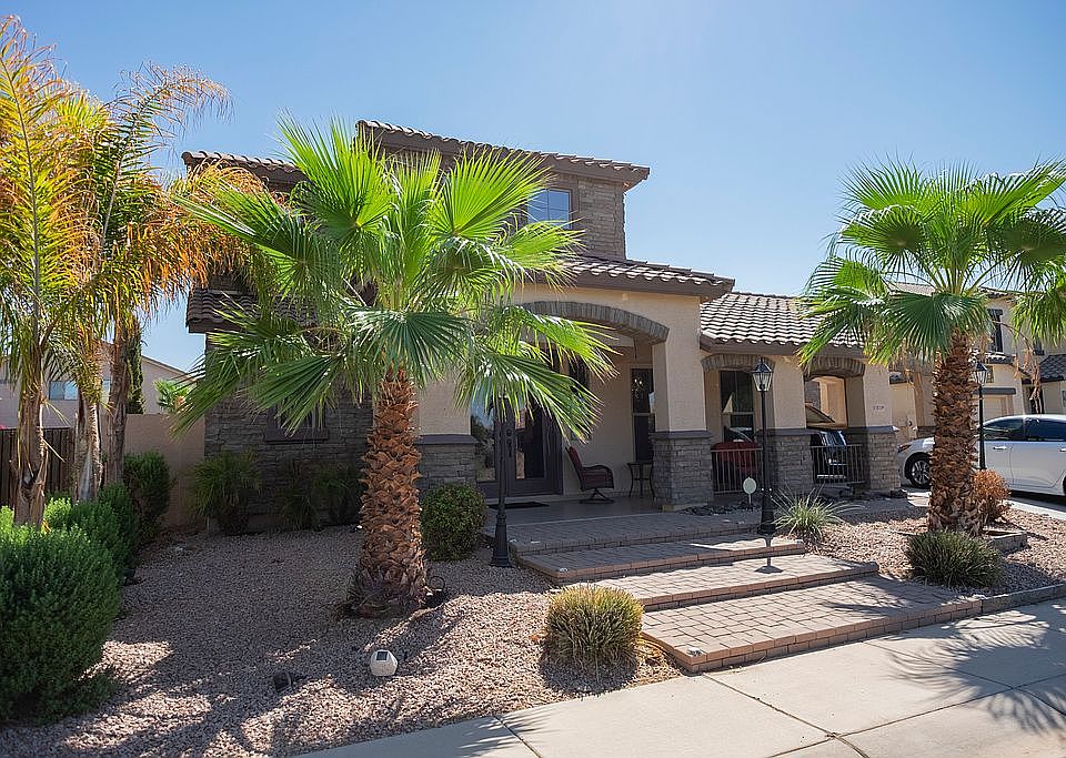 RARE, IMMACULATE 5 bedroom, 3.5 Bathrooms, 4 Car Garage AND private pool!! Fall in love with all of the archways on the exterior of the home, with widened paved steps leading to the front double door entrance. Gorgeous tile & wood flooring throughout. Formal living area with beautiful wainscoting. Formal dining w/ wainscoting - perfect for entertaining! The kitchen has granite countertops with tons of cabinets + stainless steel appliances. Huge living area for having guests over. Bedroom w/ private upgraded tiled bathroom on the main floor - ideal for guests or in-laws! Split staircase leads to the upstairs loft for additional entertaining, office space, and master bedroom fit for royalty w/ en-suite bathroom w/ dual sinks w/ granite countertops, large soaking tub + extended walk-in shower & a HUGE walk-in closet-- a must see!! Wait for it--the backyard is spectacular with an extended length covered patio, private pool, hot tub, & BBQ area. Custom painted walls! This home is a MUST SEE! Schedule your private showing today!