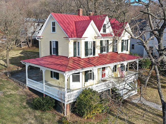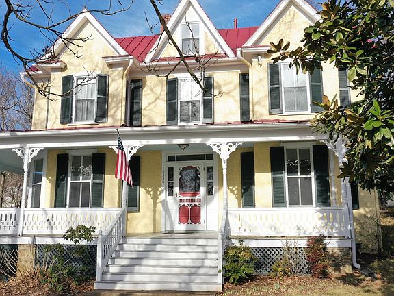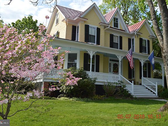 Lovingly restored Victorian in the Village of Bluemont! This venerable home was built in 1904 for Edward E. Lake, next door to the E.E. Lake General Store and Post Office. The charming wrap porch welcomes visitors with its carefully preserved cutout railings and decorative corbels. Step up to the original front door and ring the brass bell! Upon entering the foyer, you~ll be greeted by the original oak staircase, with Victorian style rounded bottom stairs supporting a large handsome newel post and rich oak paneling. The original woodwork enhancing the interior doorways and tall period rope pulley windows has been respectfully repaired with custom millwork. Gorgeous hardwood floors are found throughout the main and upper levels. Upstairs you'll find three roomy bedrooms all with generous closets, a walk-in linen closet, and stairs leading to the huge, floored walk-up attic. The master bedroom has an en suite bath with his and her closets. The hall bathroom has a shower and old claw foot soaking tub. A modern bedroom in the rear has vaulted ceilings, bay window and custom cedar bench seat overlooking the back lawn.The two front parlors can be used alternatively as a family room, den or study. The north parlor has a charming wood stove resting on a custom-made marble hearth. The south parlor is a bright room with large windows looking through the porch to the landscaped yard. The ample dining room has original wainscoting, a large closet, and is two steps away from the full down stairs bath. The kitchen was remodeled to include quartz counter tops, French terracotta floor, and updated appliances. The laundry/utility room tucked out of sight in the rear of the house also provides convenient access to the back portico and yard. Outside the kitchen, the flat-stone patio is the perfect location to enjoy a mountain sunset while overlooking the large yard with its perennial gardens and flowering trees. Two sheds on the property provide ample space for gardening or equipment storage.Many original details and fixtures remain and marry well with modern updates. Completely modern plumbing and electrical throughout, three full baths, high efficiency dual-fuel central heat/air, storm windows, high efficiency washer dryer and large closets have been added for comfortable living.Bluemont has become a desirable Loudoun County destination for those seeking quaint village living. The Snickersville Store, Loudoun County Community Center in Historic Bluemont School, the Village Montessori School and many other old shops and homes provide services and neighbors within walking distance. Bluemont is home to some of Virginia's finest wineries, breweries and the local agricultural farms that offer family friendly tours and fun. The village has easy access to Route 7 and a quick trip to points East or West. Welcome home to Bluemont!