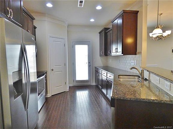 Move in ready End unit! Home has hardwood floors in great room. kitchen & breakfast area. 42 in cabinets, receessed ligting, smooth ceilings. granite counter tops, breakfast bar. SS appliances, refrigerator remains. Dining area & separate breakfast area. MASTER DOWN w/ step ceiling and crown moulding, master bath has dual sinks and walk in closet. Lots of natural lighting! Upstairs has full bath, 2 good size bedrooms w/walk in closets. Nice loft area up. Private rear backs up to natural area.