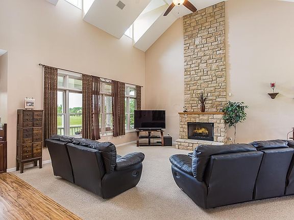 The perfect setting on over 1.5 acres with enough space but still able to enjoy neighbors with view of pond from your screened in patio and outdoor patio for endless outdoor entertaining. Whole house surround sound and even speakers on the the back screened patio! Spacious and open floor plan with vaulted ceilings and skylights throughout. Kitchen has the perfect serving window for entertaining. First floor master suite and master bath and laundry. 4th bedroom is loft. Finished LL offers the ideal entertaining space and rec space for kids with endless storage. You must see to believe it!