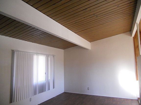 Upstairs - Quaint, new paint, window dressings, fairly new bathtub, washbasin, and toilet and laminate flooring with tile in kitchen and bath. Backyard, laundry room, storage, parking for one and street parking. Building is nestled between single family homes in a cul-de-sac, quiet, pleasant neighborhood. - Do Not Disturb Tenants. No pets. No smoking, Owner pays for water, gardener and trash pickup. Have good credit and background. No Section 8.