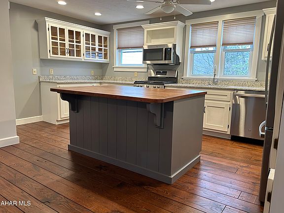 Beautifully remodeled Cape Cod nestled in the hollows of Tyrone, PA. This unique property offers custom oak hardwood plank floors and elegant oak doors throughout. The Kitchen showcases oversized island cabinets perfect for storage, modern stainless steel appliances and stunning granite countertops. The rich natural tones of Oak add a sense of luxury and durability to the custom kitchen any cook is sure to love.