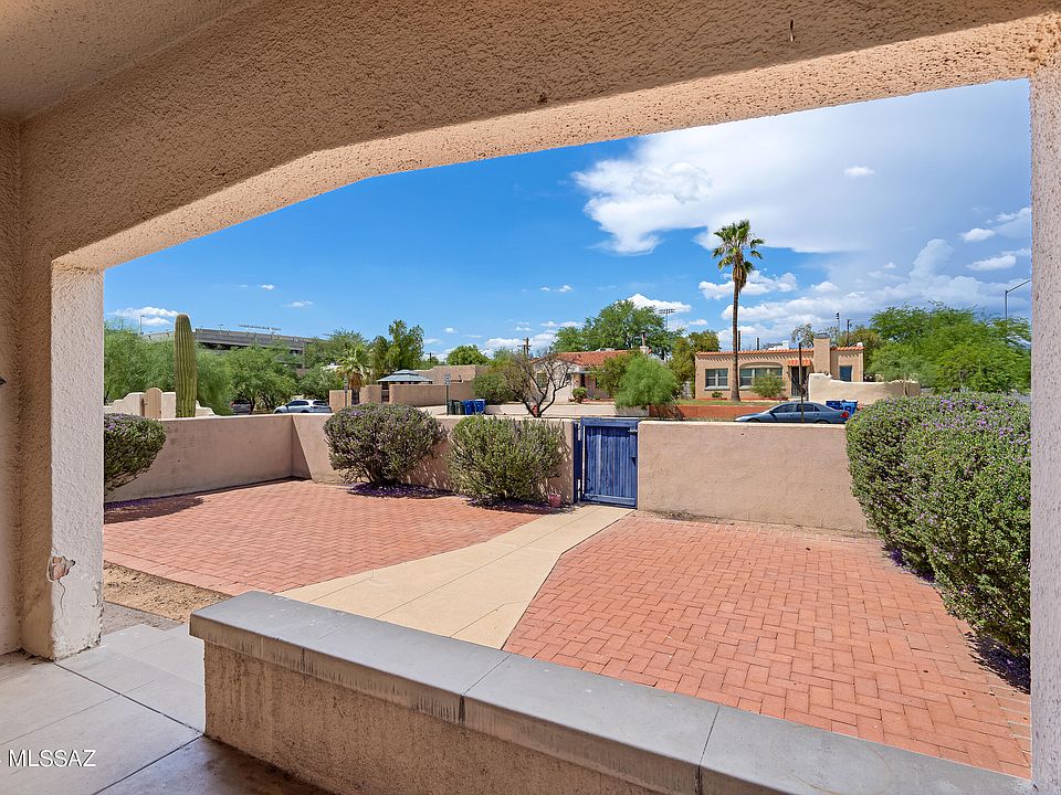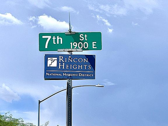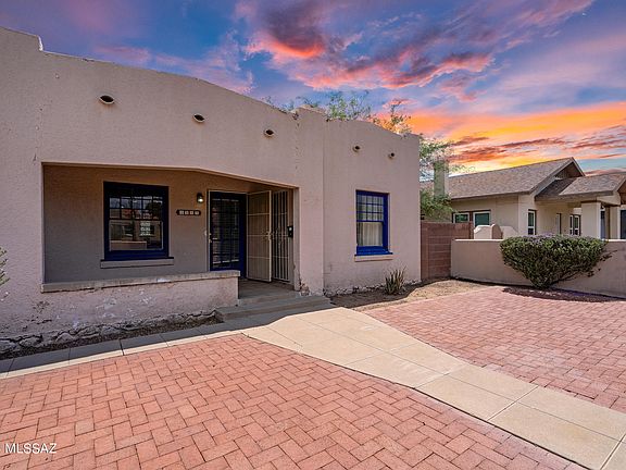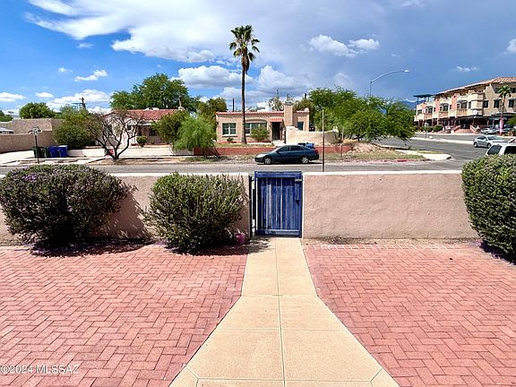 Antique Rincon Heights Bungalow with GUEST HOUSE built in 1980! Corner lot w/walled courtyard, fenced yard & OFF STREET PARKING for multiple cars. LOCATED IN THE HEART OF U OF A! McKale Stadium in view from the front yard! Walk to school, shops, & restaurants! Main house is a 2Br/1Ba Sante Fe w/liv rm & eat in kitchen. Enjoy the front porch & the rear elevated, covered deck w/laundry nook. Narrow board hardwood floors (possibly original). Antique fireplace & windows add classic charm. GUEST HOUSE offers a great room w/open beam ceilings & tile floor. Carpeted BR & Full bath. Shared yard w/drive in gate, plus a large, sturdy shed. The property offers history, quaint charm & a fabulous location. Ready for new owner to transform. Sold as-is.