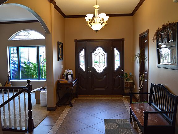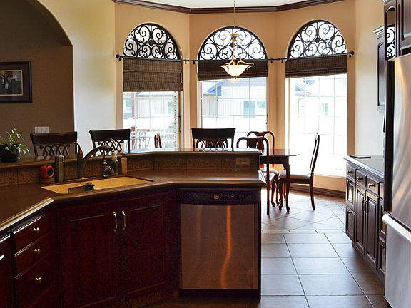 REDUCED AGAIN! This home has something for everyone! Located next to the golf course in Naples (next to Vernal), this beautiful executive home has a classic, timeless quality that shows up everywhere. The over-sized 3 car garage wired for 220 provides a lot of inside parking and storage but along side and behind the vinyl fenced gate is room for more parking for RV's and toys. Don't miss the custom built climbing wall with many features. Cherry wood with cherry stain throughout the house including many built-ins. The kitchen has a double oven with countertop range, frosted glass door pantry, built in hutch, appliance garage and stainless steel appliances. There are 2 gas fireplaces, potential for a theater room in the basement. Walk in closets with automatic lighting. Jack and Jill bathroom, separate laundry room, covered deck plumbed for gas (grill included) lots of features abound in this home. You just have to see it!