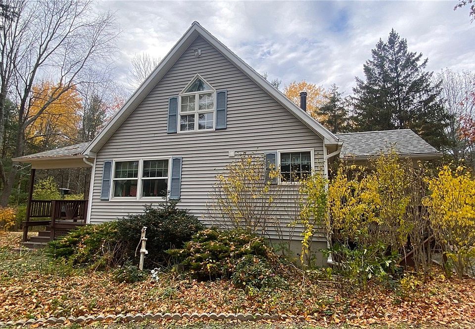 Charming cape cod style country home situated on 4.83 acres of woods. Beautiful country setting that welcomes everyone. Large yard with fruit trees and gazebo. Two covered porches to relax and enjoy nature no matter what the weather. Inside you will find beautiful natural wood trim and some hardwood floors. Home was well maintained as evidenced in the solid surface counter top and appliances. Tiled dining room, kitchen and bathrooms for easy cleaning. First floor laundry is conveniently located just outside of the first floor bedroom. Full bath makes this floor great for every need. Second floor has large bedroom w/ skylight, two closets (one walk in) and large full bathroom complete with soaking tub. The basement has partially finished bonus room, perfect space as a playroom, home gym, home thearter, or any other type of gathering space you can think of. Plenty of additional storage in the basement and a large workshop area. Detached two car garage w/ electric, concrete floor and electric door opener. Bonus-large Woodtex shed. All this located just a few miles from Penn Yan.