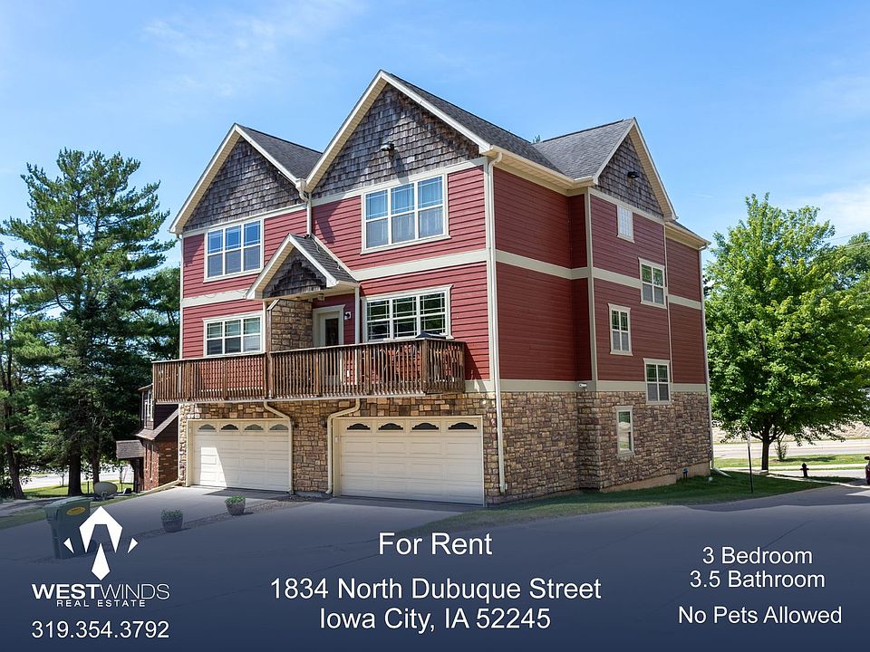 3 Bedroom, 3.5 Bathroom townhome located in Iowa City. This townhouse features hardwood flooring throughout the living room, dining room space, and kitchen on the upper level. The kitchen features ample cabinets, granite countertops, and a large pantry. Both bedrooms upstairs have a private bathroom and walk-in closet. Third private bedroom and bathroom on the lower level. In-unit washer and dryer. 2-car attached garage. Near downtown Iowa City and City Park with easy access to I-80 and the Mayflower Cambus stop.
